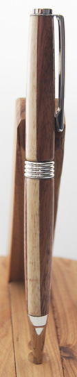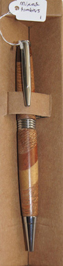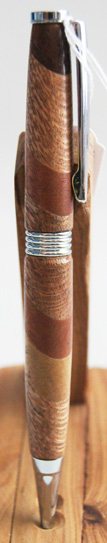 For those who like a little variety, this pen is made using a mixture of timbers glued together and prepared into diagonal cut blanks to create interest.