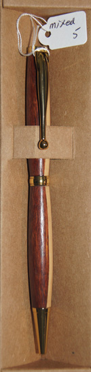 #5 This stylish pen is made with Mandarin (fruit tree) sandwiched in Jarrah timber. Gold hardware and stylish shaping make this an attractive pen to look at, and comfortable to use. $45.95 |